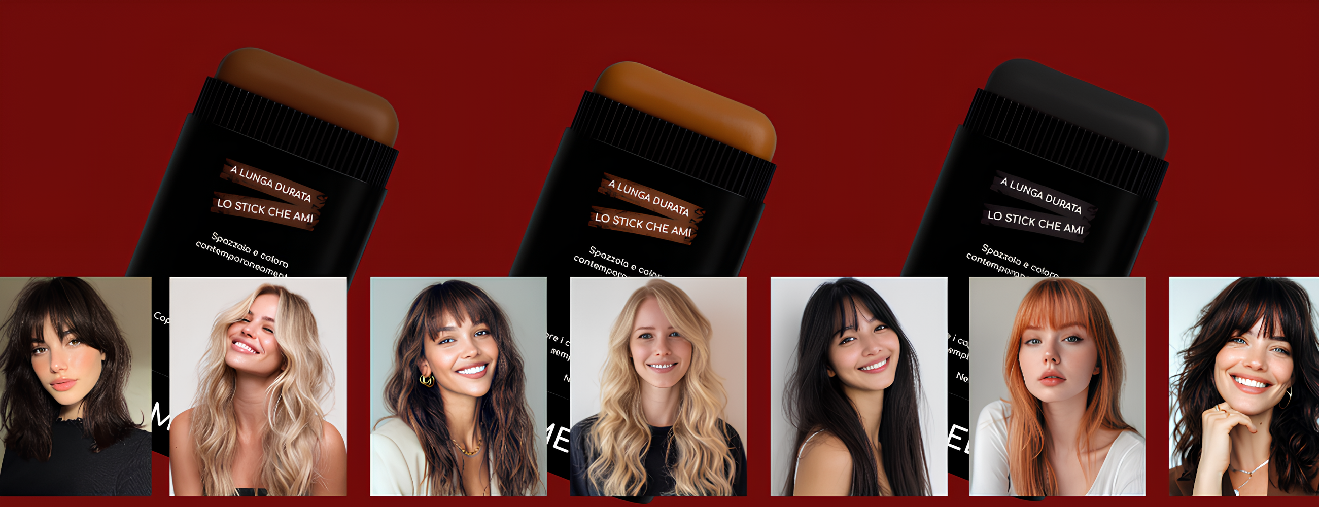 Offriamo tre tonalità universali: Nero, Nero Marrone e Caffè, studiate per adattarsi perfettamente alla maggior parte dei colori naturali dei capelli.